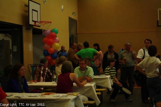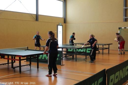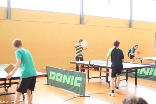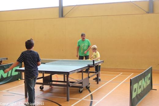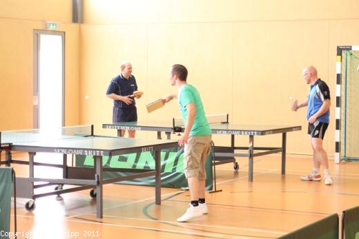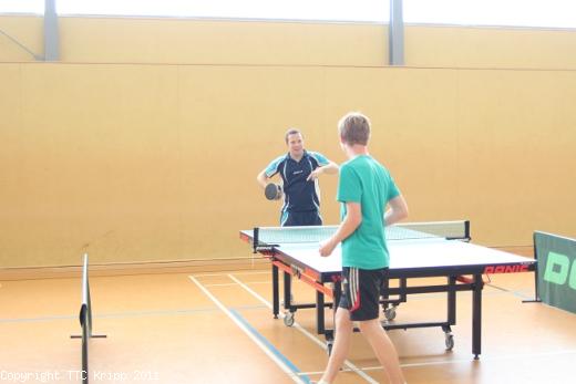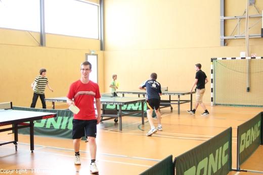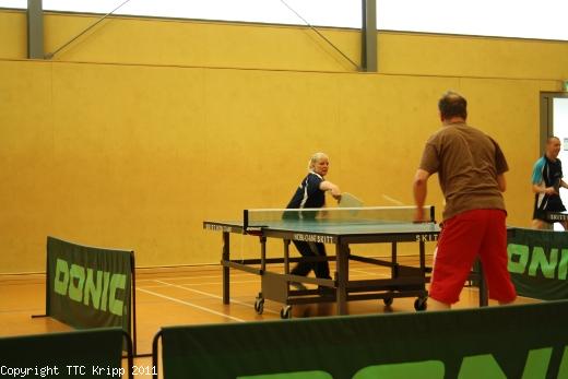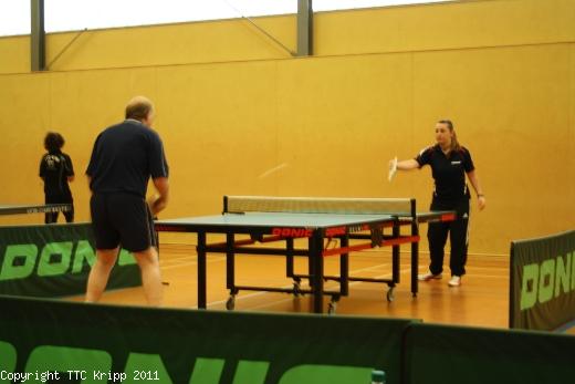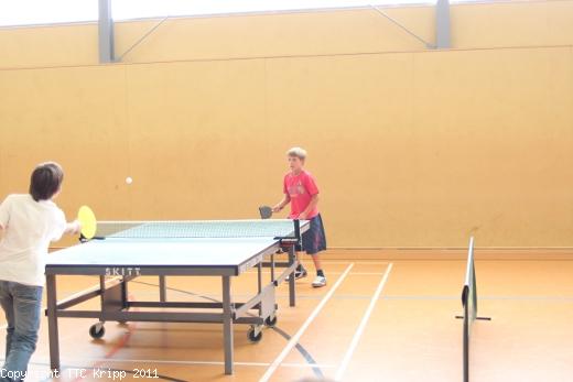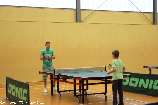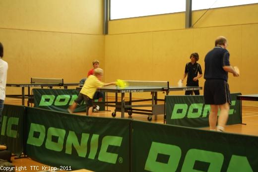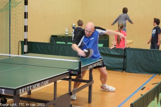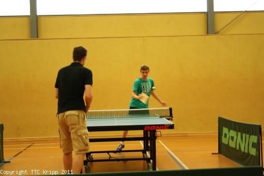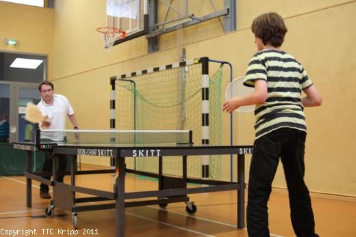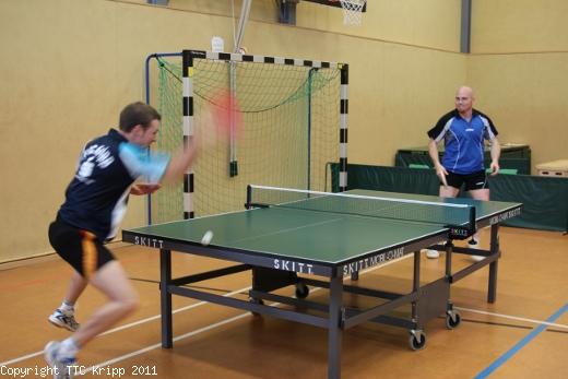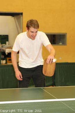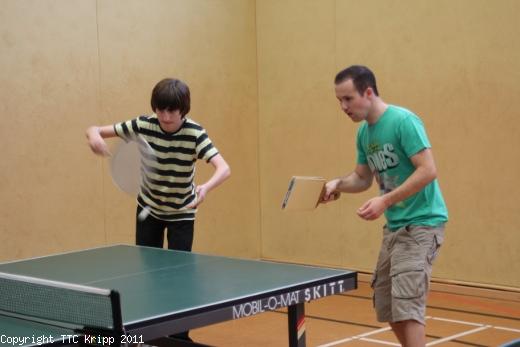 Voller Einsatz: Markus beim Topspin mit Küchenschwamm-Belag